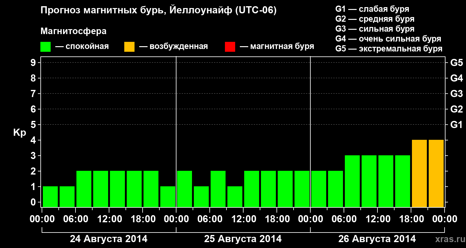 Прогноз магнитных бурь в Йеллоунайфе на 24 августа 2014 года
