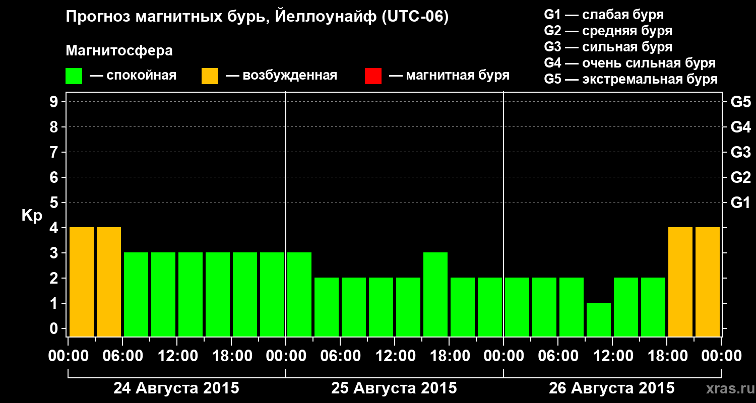 Прогноз магнитных бурь в Йеллоунайфе на 24 августа 2015 года