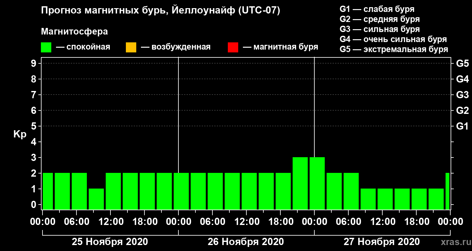 Прогноз магнитных бурь в Йеллоунайфе — 25 ноября 2020 года