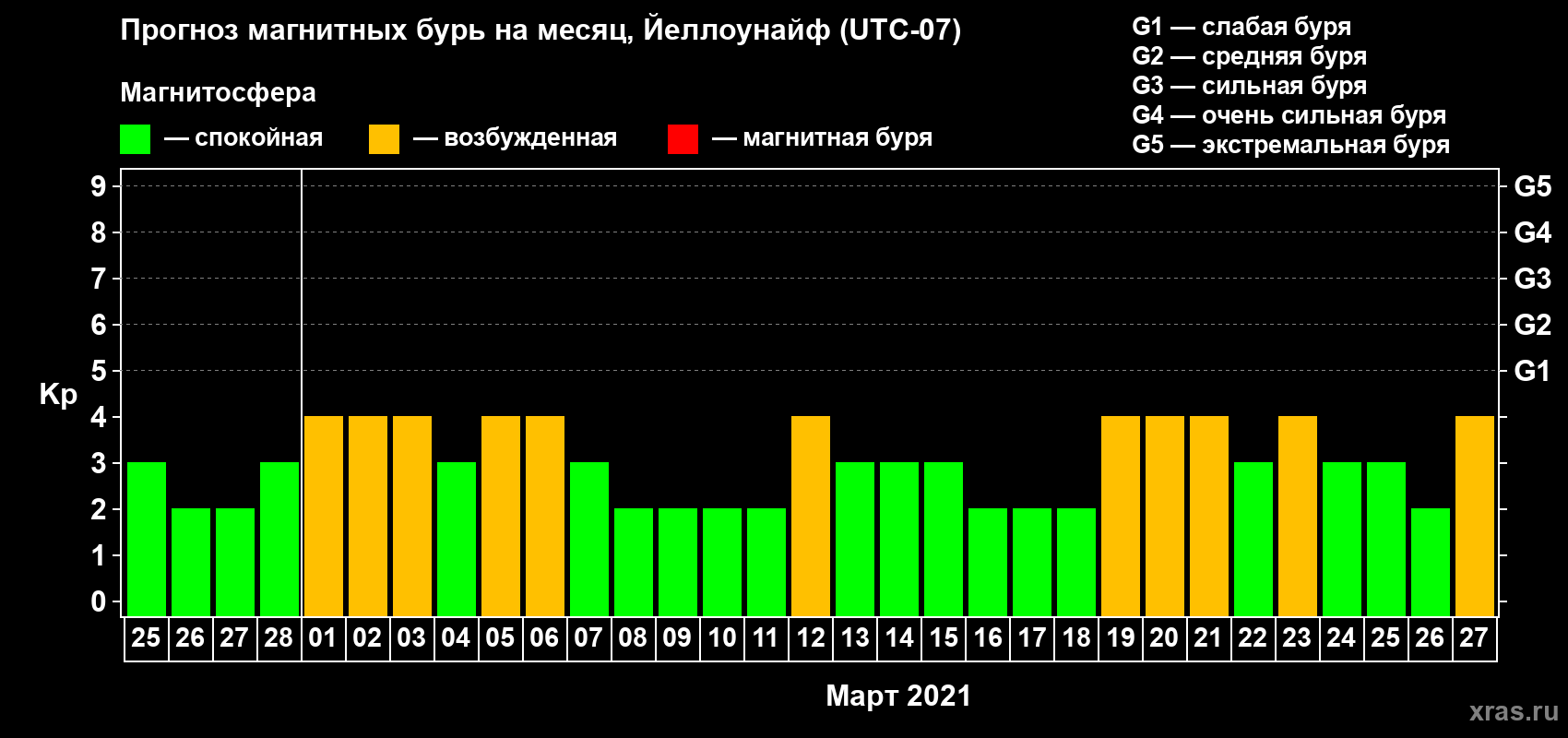 Прогноз магнитных бурь в Йеллоунайфе на 25 февраля 2021 года