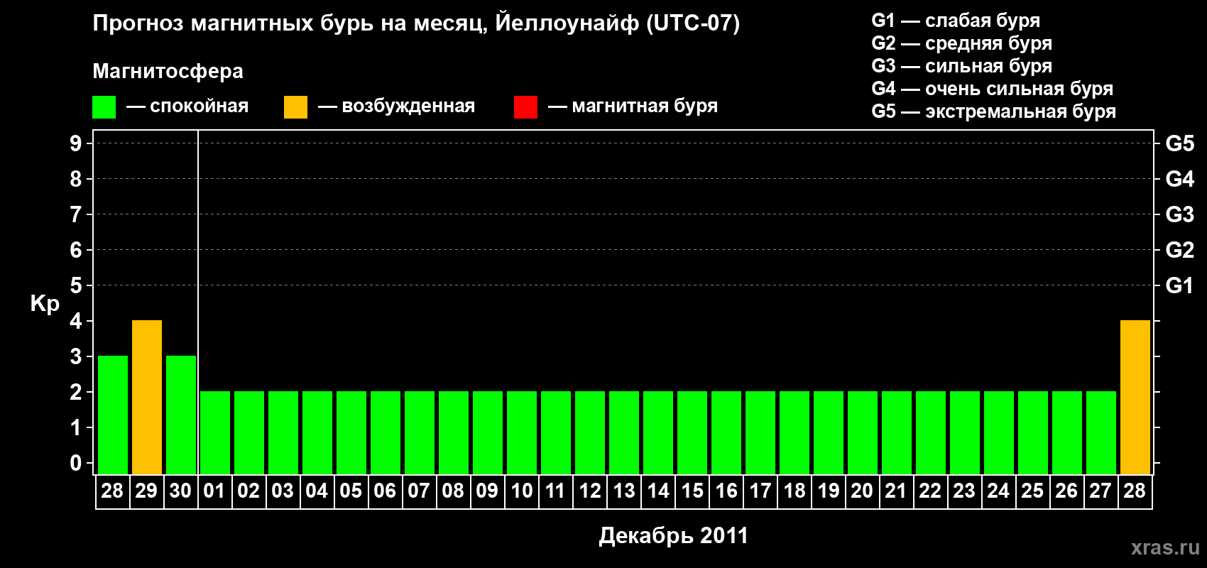 Прогноз магнитных бурь в Йеллоунайфе — 28 ноября 2011 года