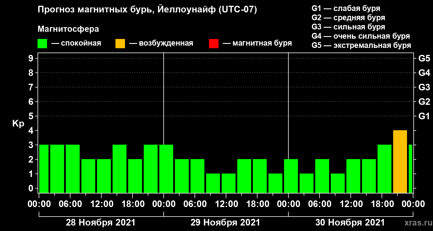 Прогноз магнитных бурь в Йеллоунайфе на 28 ноября 2021 года