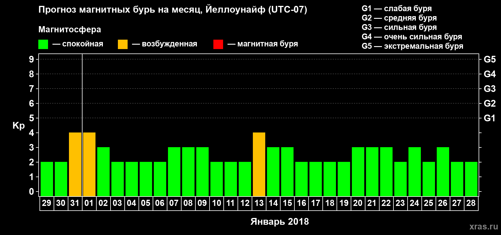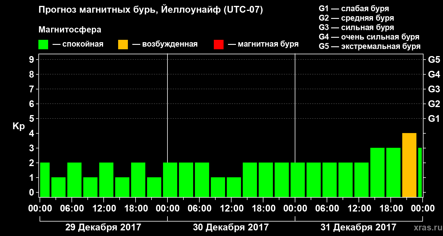 Прогноз магнитных бурь в Йеллоунайфе — 29 декабря 2017 года