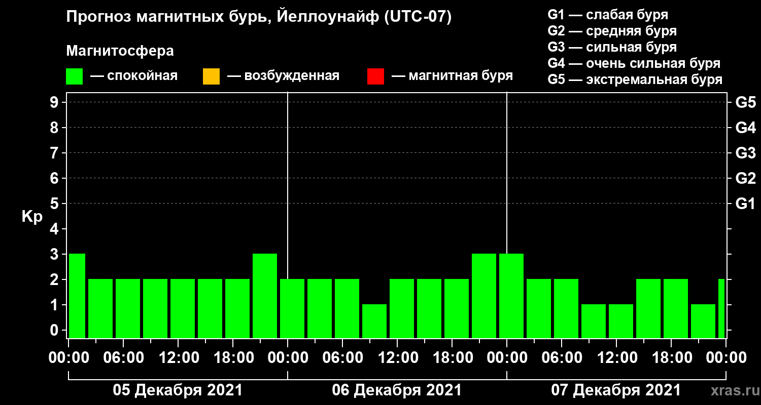 Прогноз магнитных бурь в Йеллоунайфе на 5 декабря 2021 года