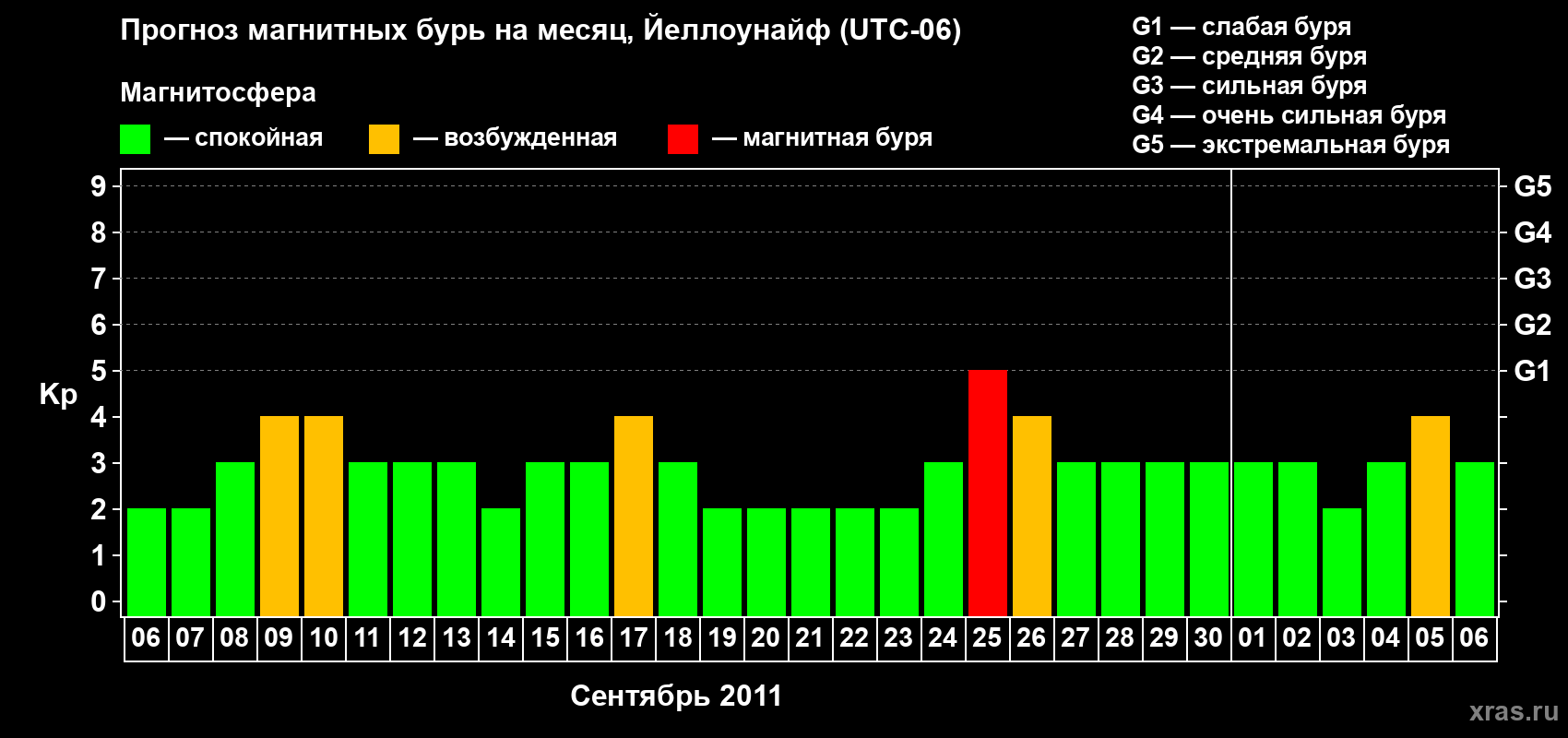Прогноз магнитных бурь в Йеллоунайфе — 6 сентября 2011 года