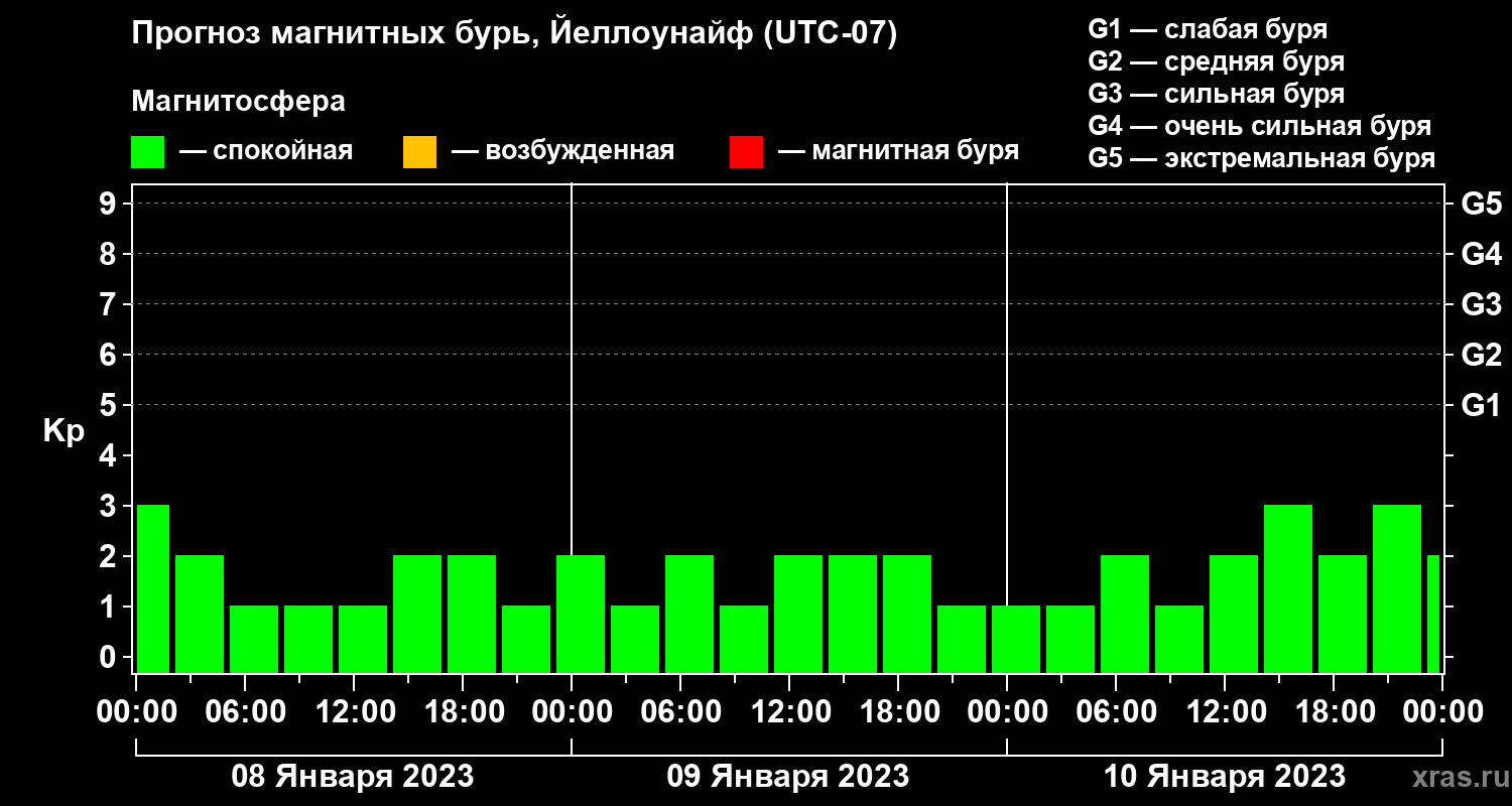 Прогноз магнитных бурь в Йеллоунайфе на 8 января 2023 года