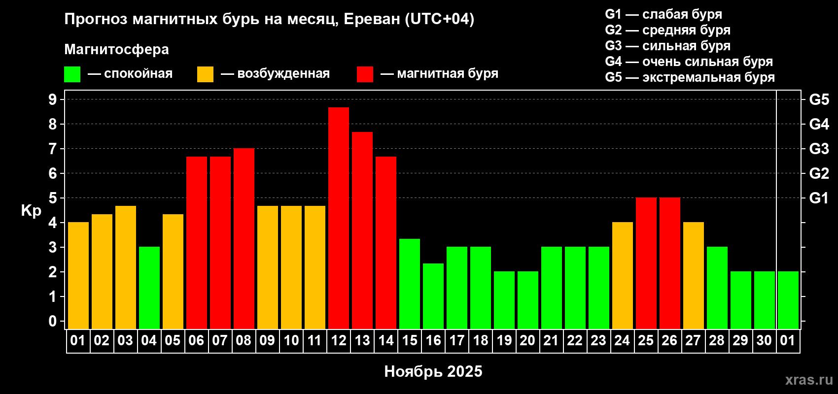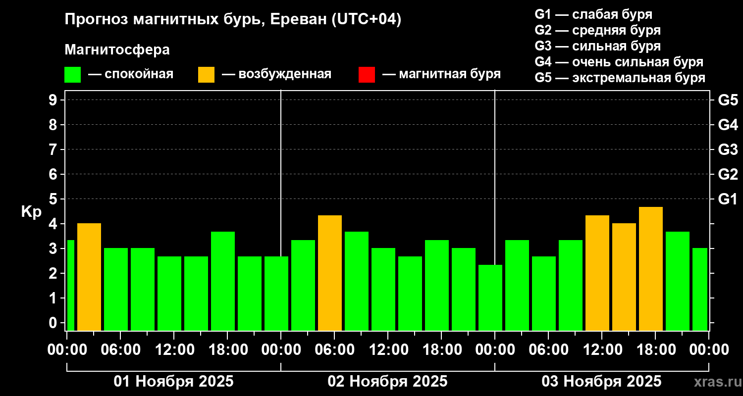 Прогноз магнитных бурь в Ереване — 1 ноября 2025 года