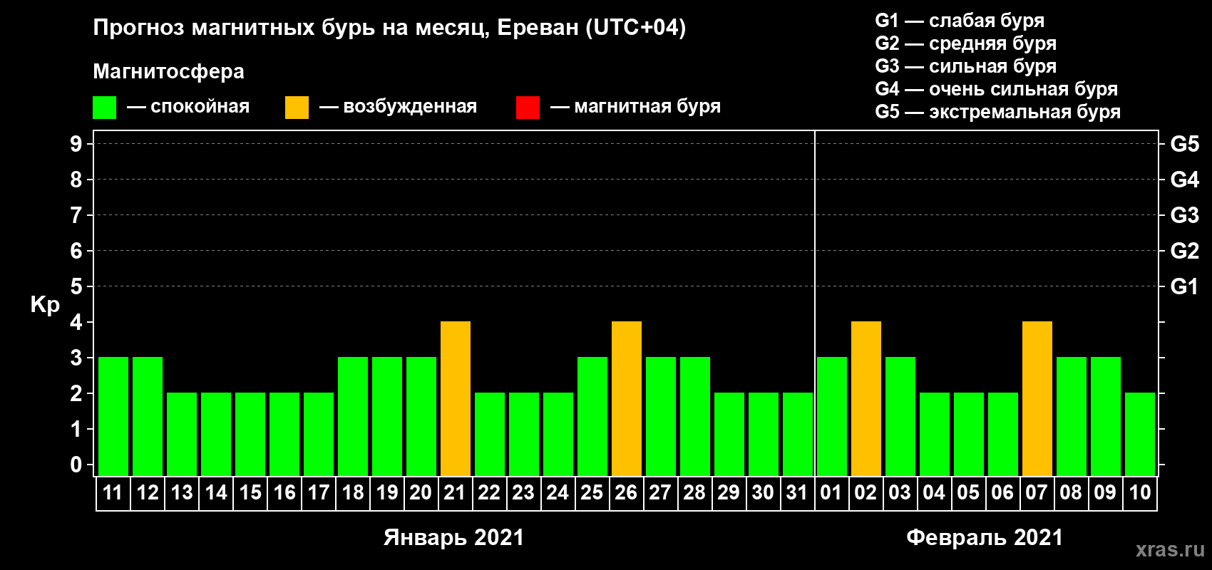 Прогноз магнитных бурь в Ереване — 11 января 2021 года