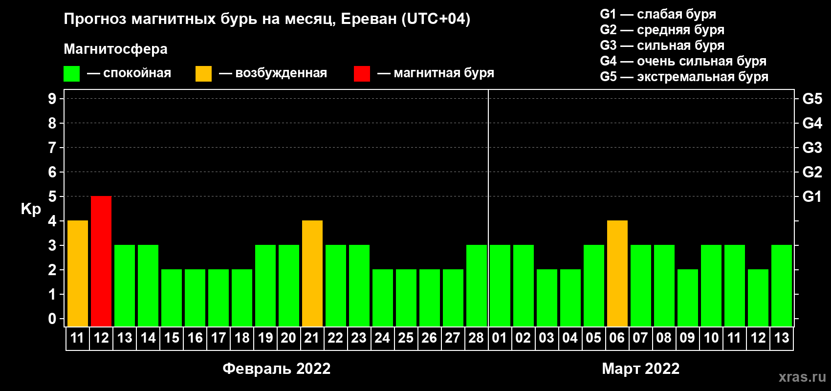 Прогноз магнитных бурь в Ереване — 11 февраля 2022 года