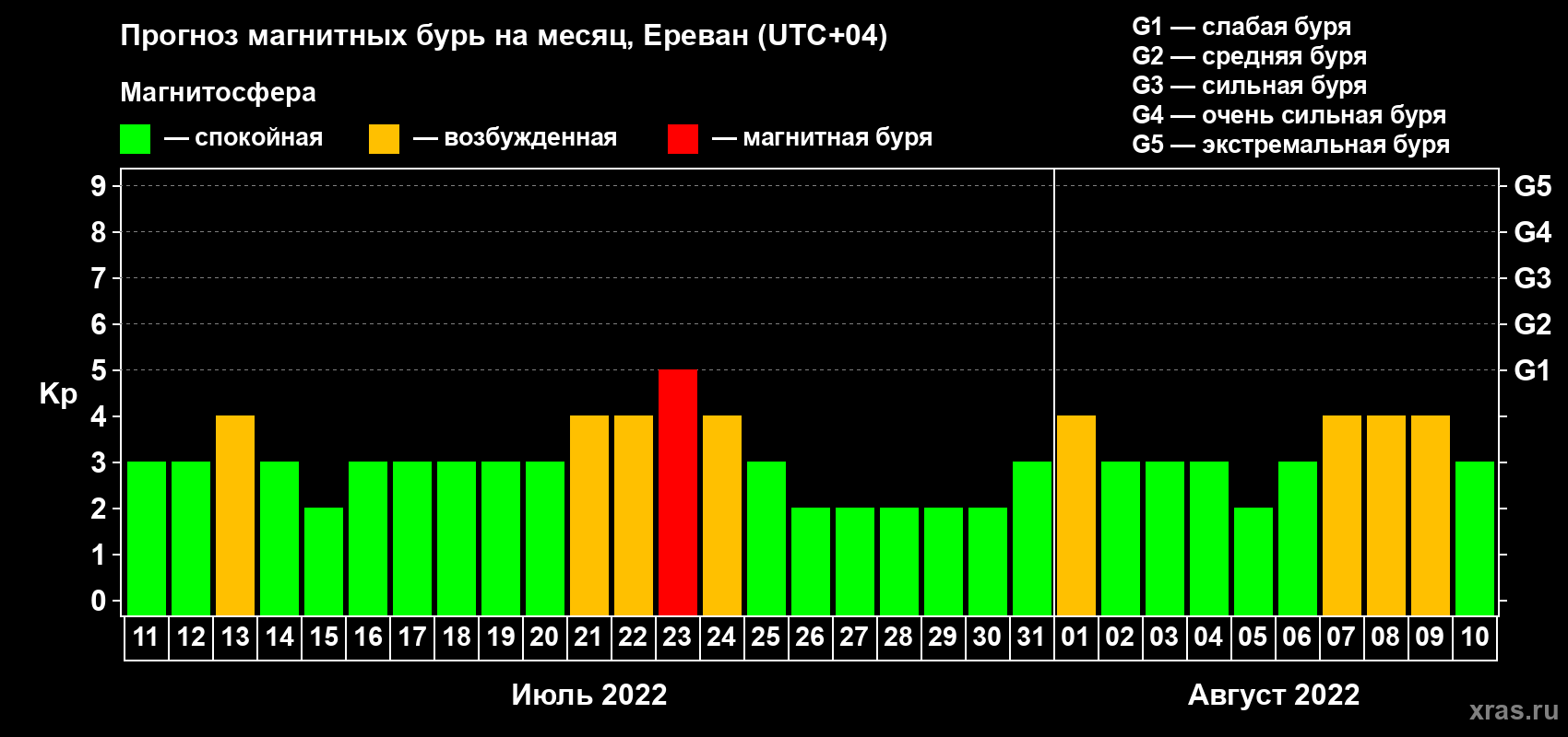 Прогноз магнитных бурь в Ереване — 11 июля 2022 года