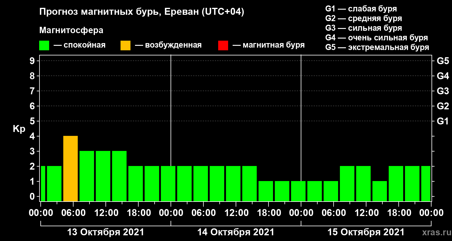 Прогноз магнитных бурь в Ереване — 13 октября 2021 года