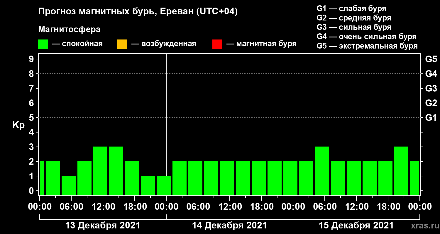 Прогноз магнитных бурь в Ереване — 13 декабря 2021 года