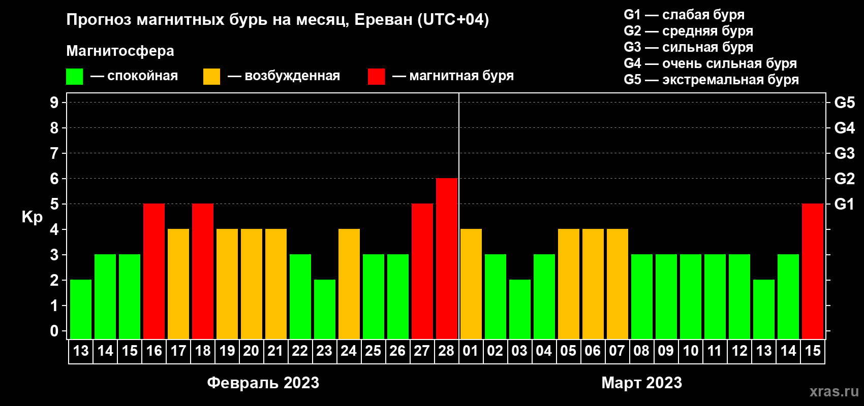 Прогноз магнитных бурь в Ереване — 13 февраля 2023 года