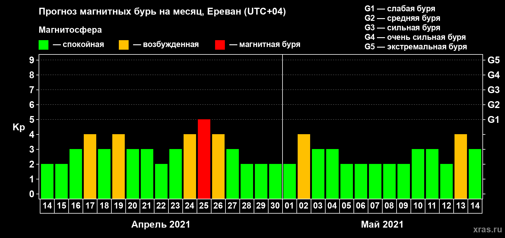 Прогноз магнитных бурь в Ереване — 14 апреля 2021 года
