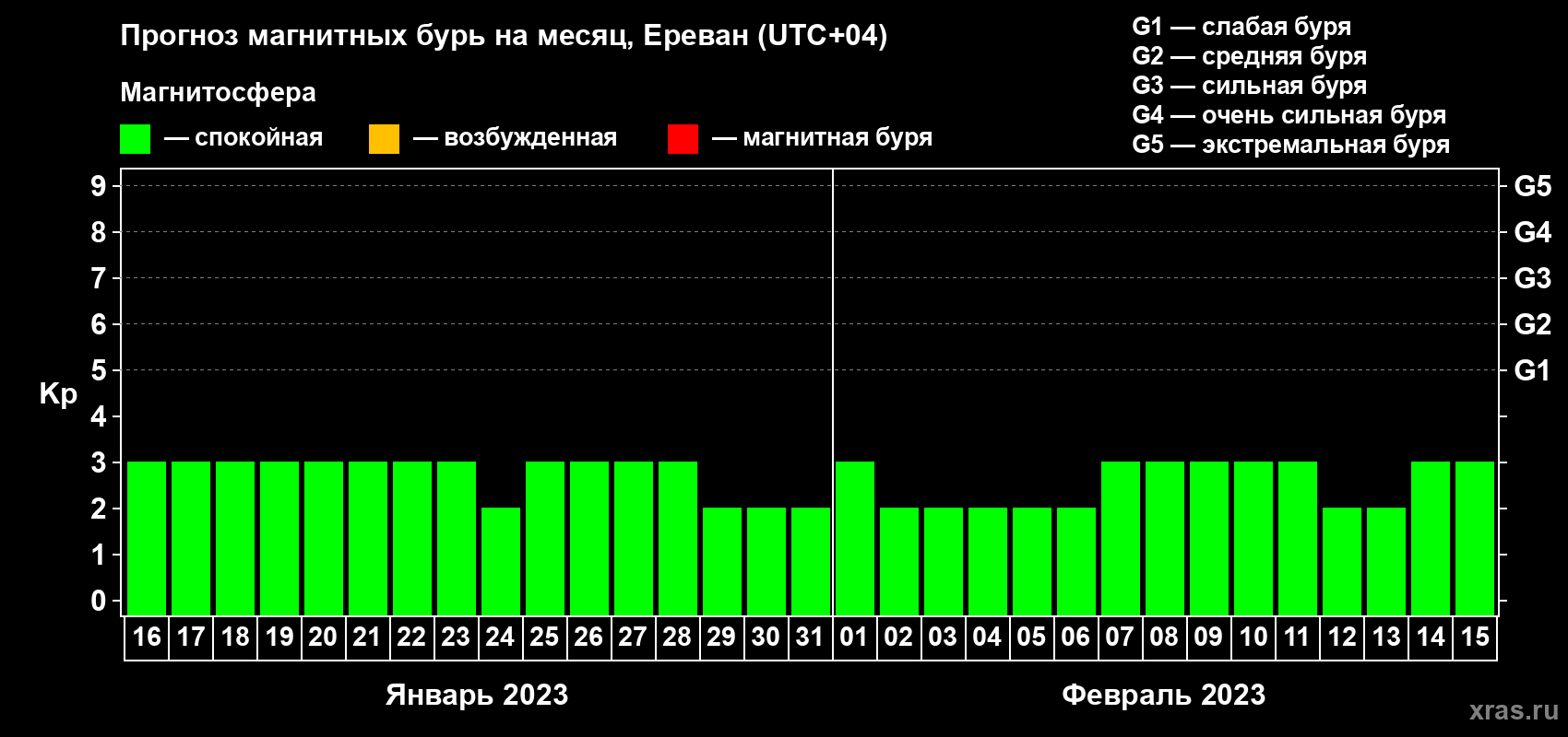 Прогноз магнитных бурь в Ереване — 16 января 2023 года