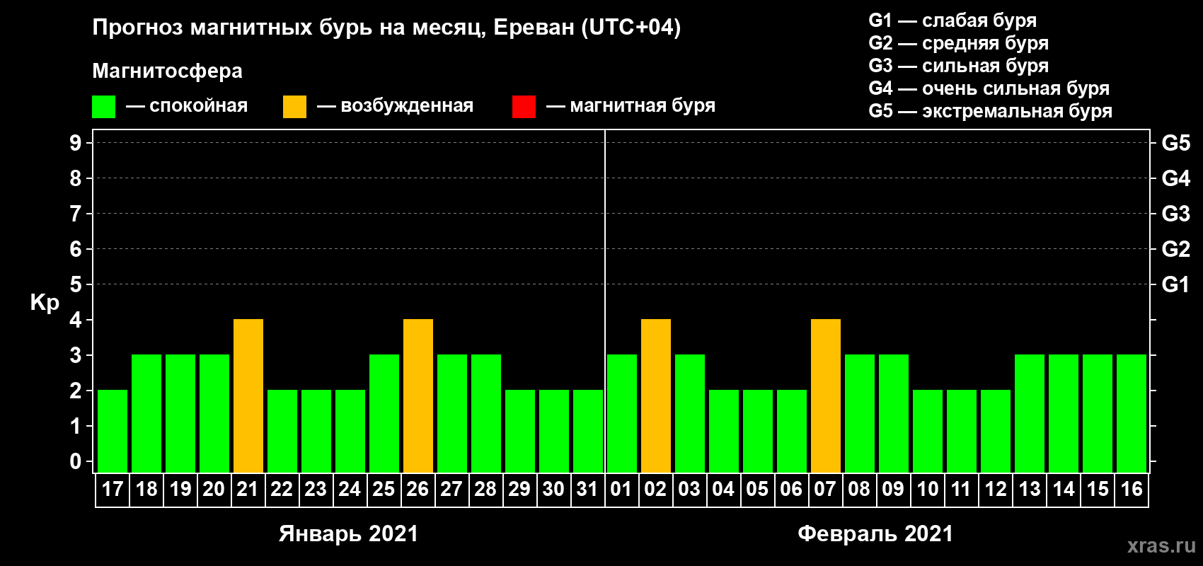 Прогноз магнитных бурь в Ереване — 17 января 2021 года