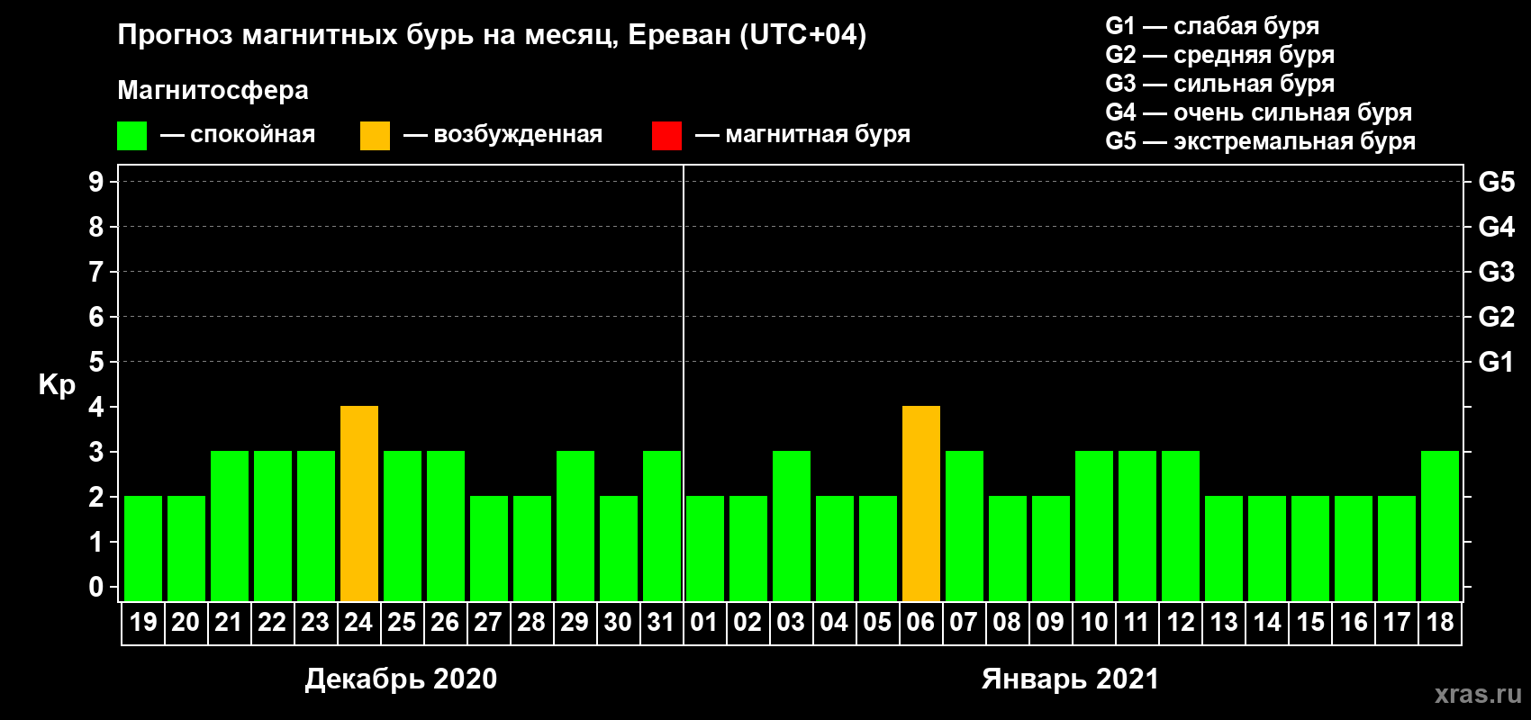 Прогноз магнитных бурь в Ереване — 19 декабря 2020 года