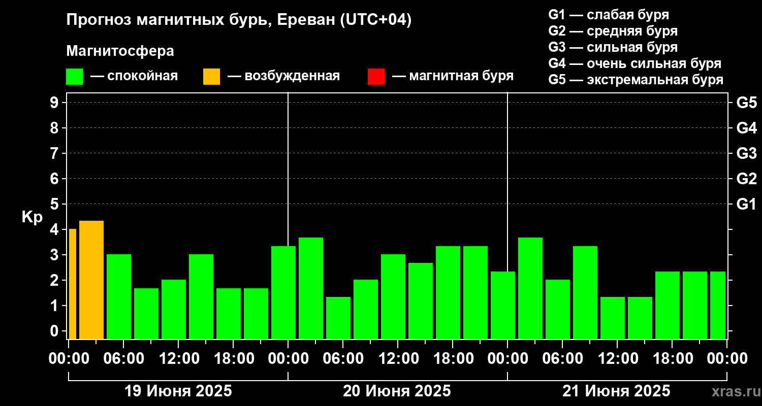 Прогноз магнитных бурь в Ереване — 19 июня 2025 года