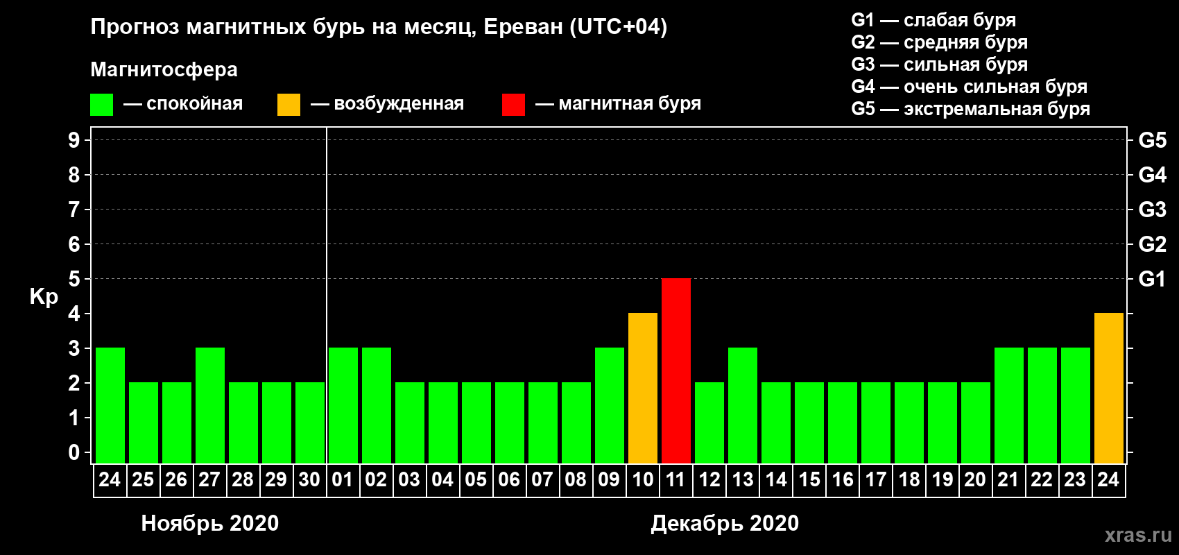 Прогноз магнитных бурь в Ереване — 24 ноября 2020 года