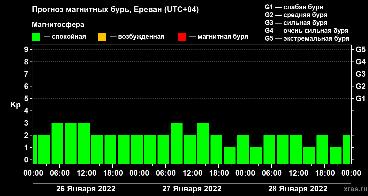 Прогноз магнитных бурь в Ереване — 26 января 2022 года