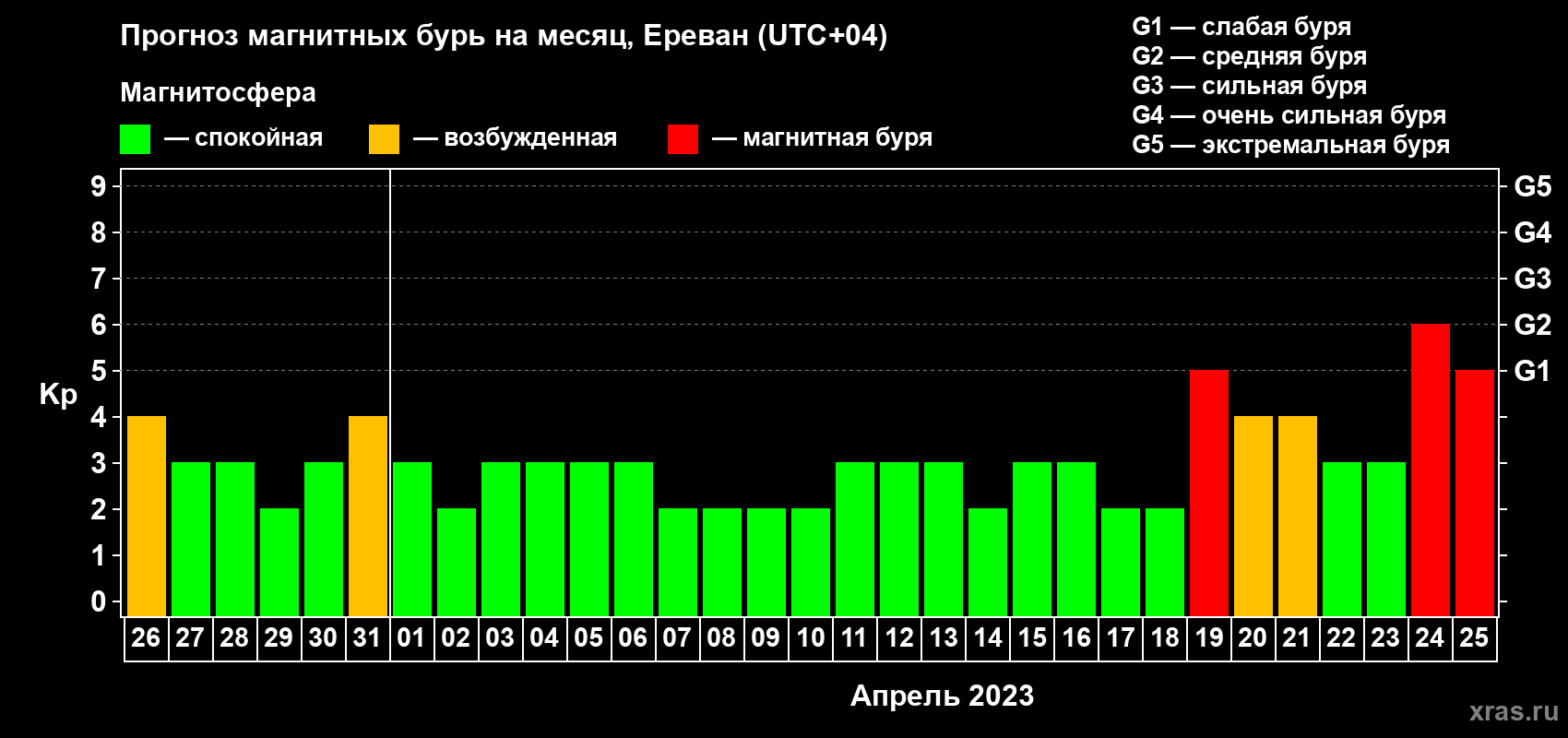 Прогноз магнитных бурь в Ереване — 26 марта 2023 года
