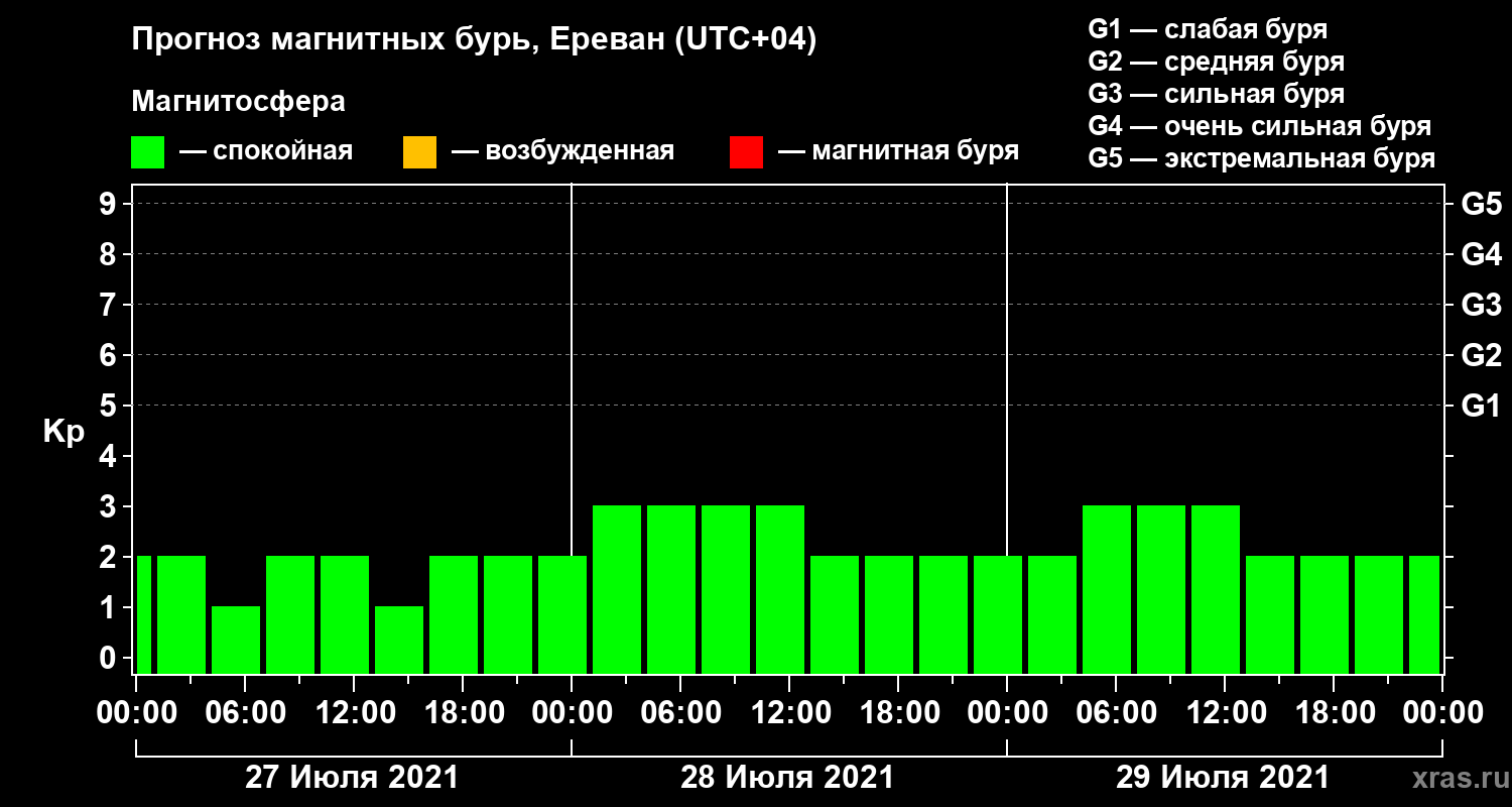 Прогноз магнитных бурь в Ереване — 27 июля 2021 года