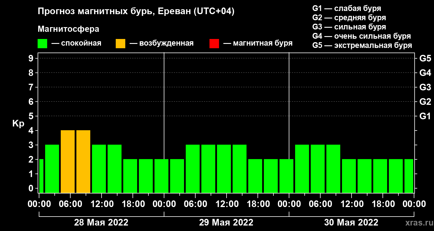 Прогноз магнитных бурь в Ереване — 28 мая 2022 года