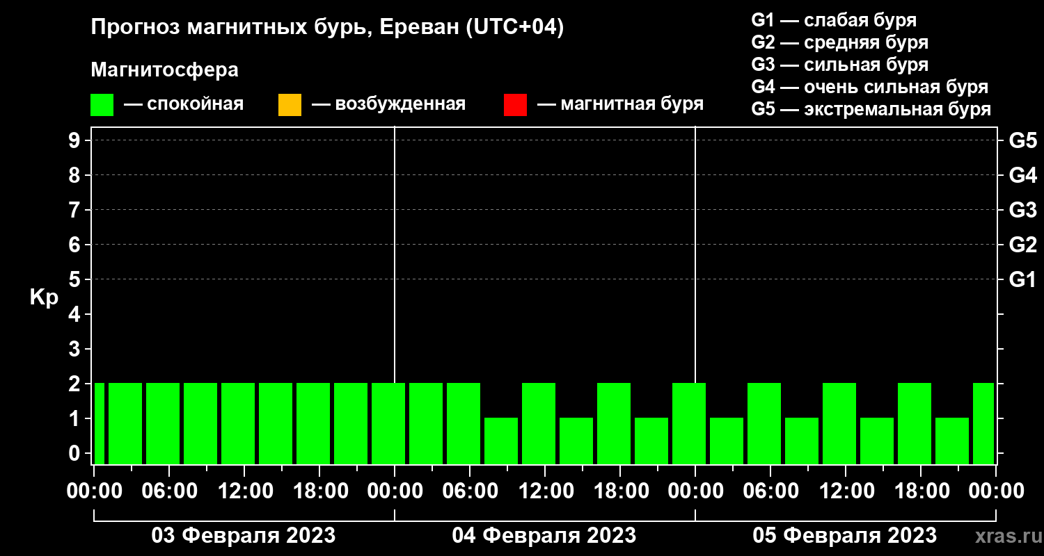 Прогноз магнитных бурь в Ереване — 3 февраля 2023 года