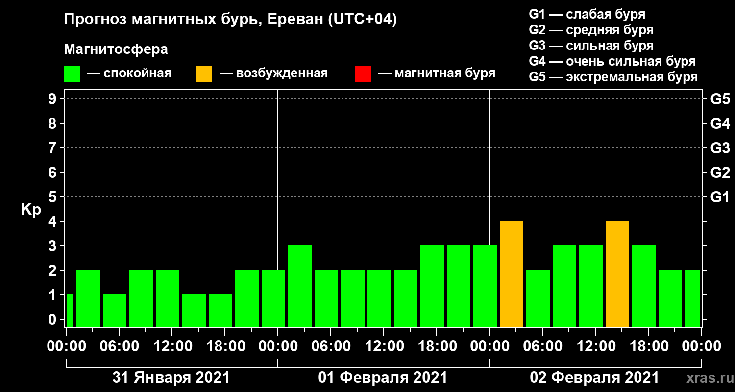 Прогноз магнитных бурь в Ереване — 31 января 2021 года