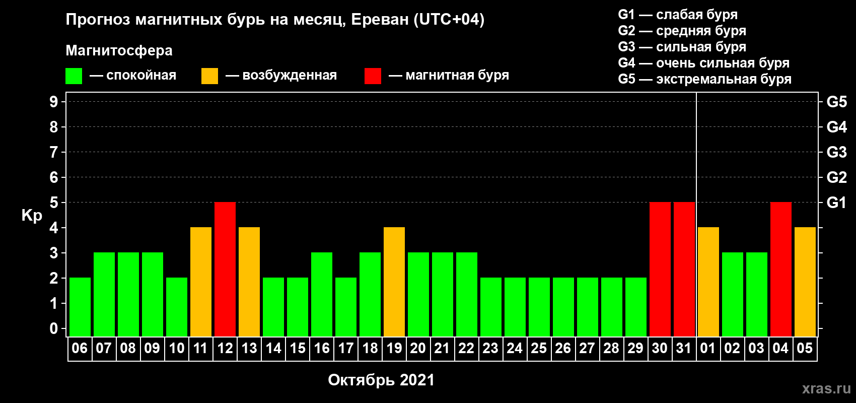 Прогноз магнитных бурь в Ереване — 6 октября 2021 года