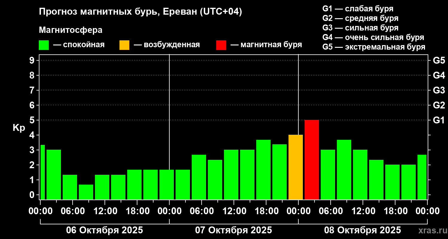 Прогноз магнитных бурь в Ереване — 6 октября 2025 года