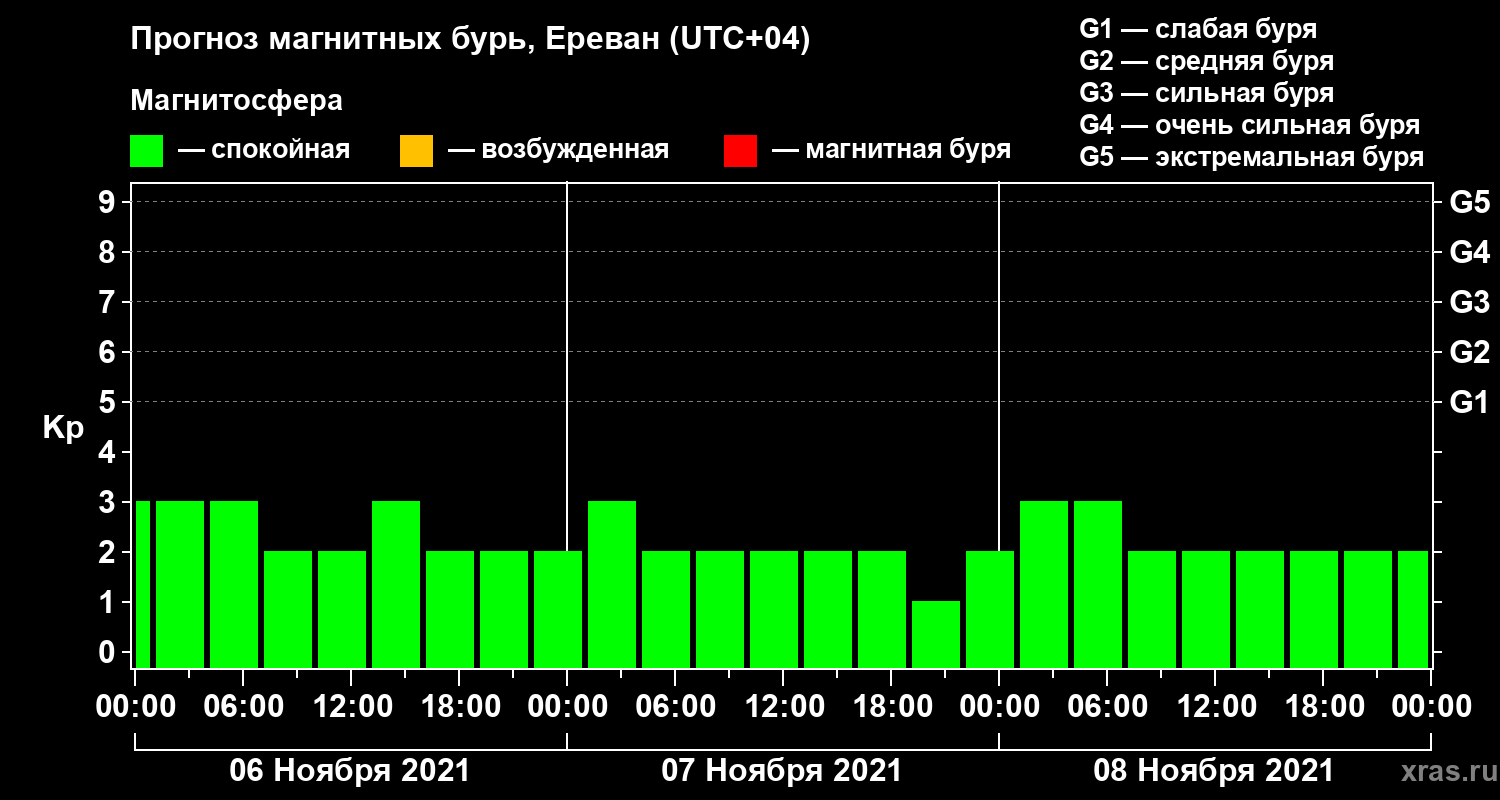 Прогноз магнитных бурь в Ереване — 6 ноября 2021 года