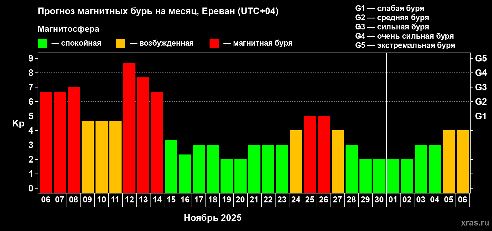 Прогноз магнитных бурь в Ереване на 6 ноября 2025 года