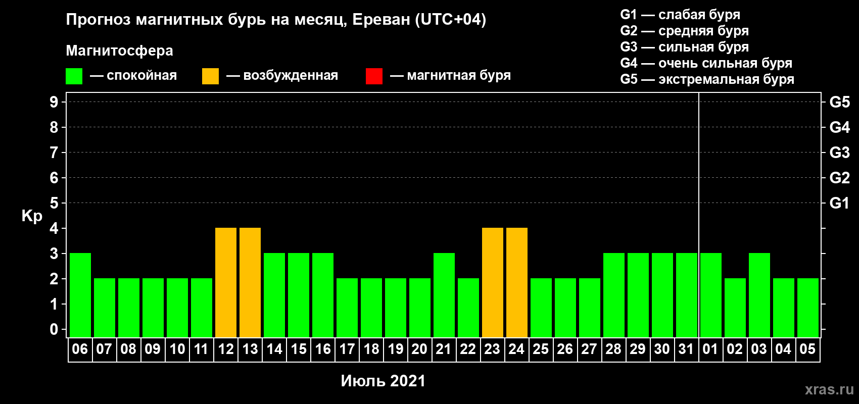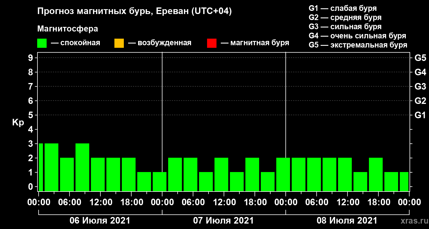 Прогноз магнитных бурь в Ереване — 6 июля 2021 года