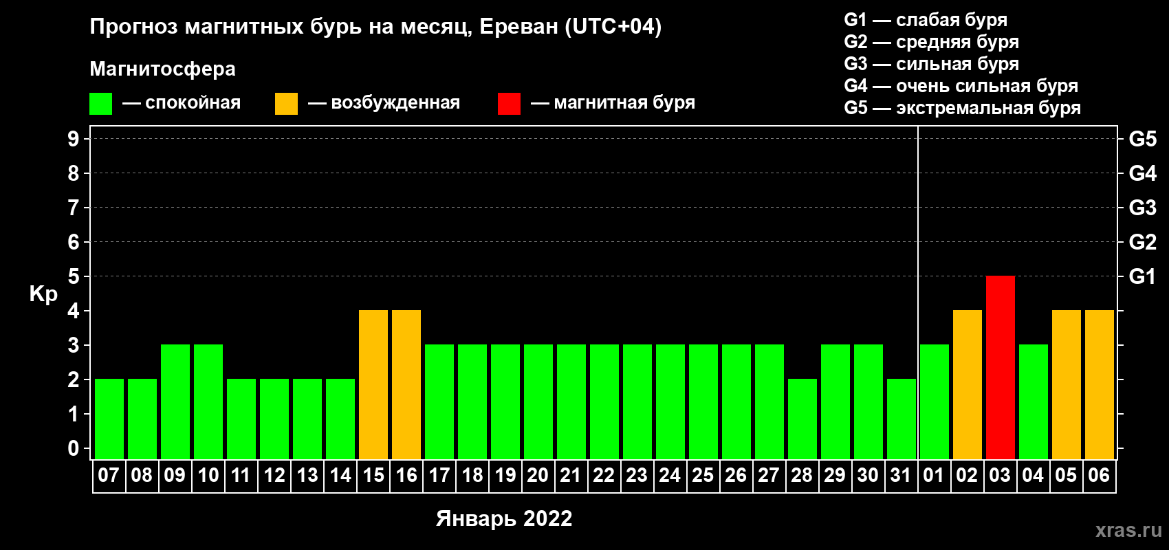 Прогноз магнитных бурь в Ереване — 7 января 2022 года