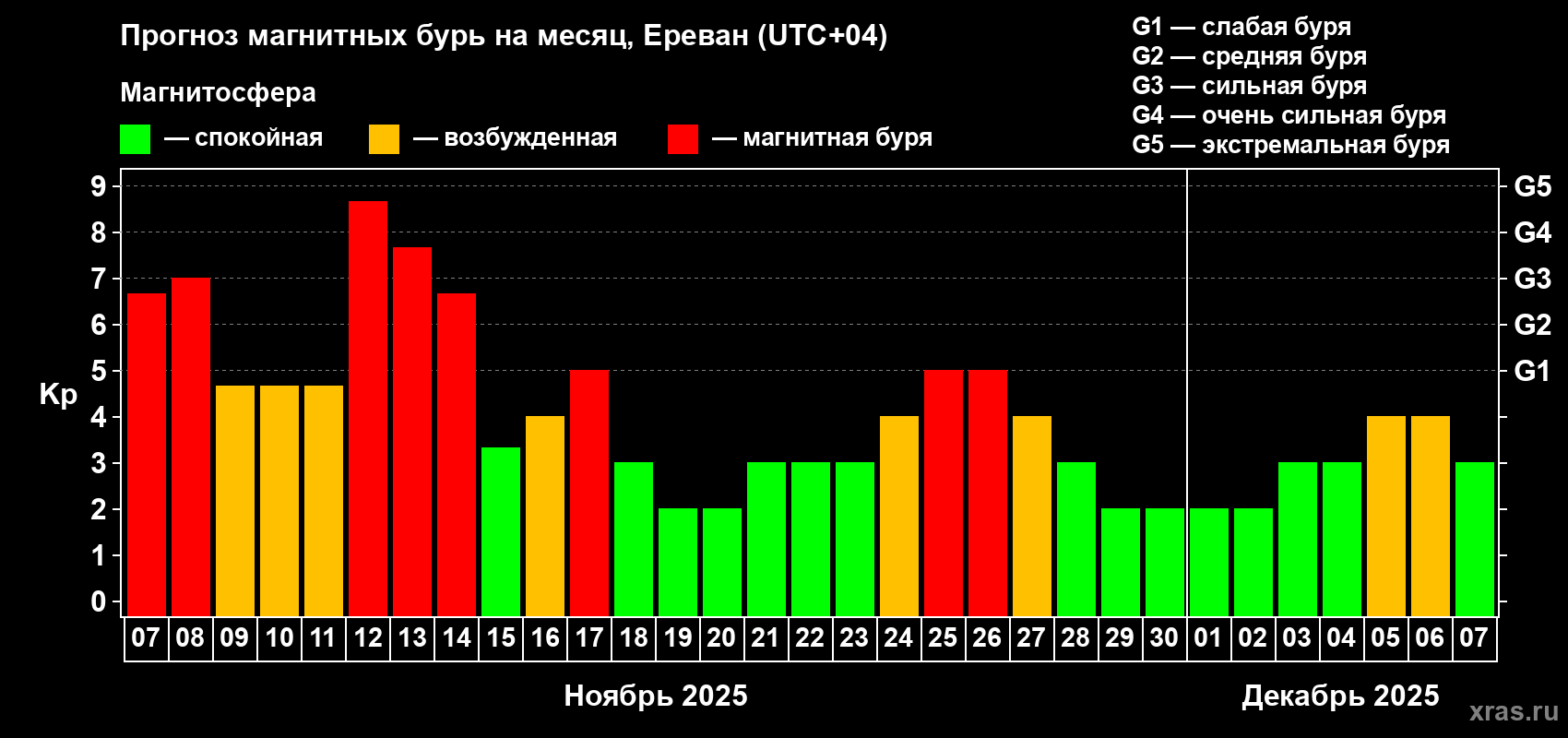 Прогноз магнитных бурь в Ереване на 7 ноября 2025 года