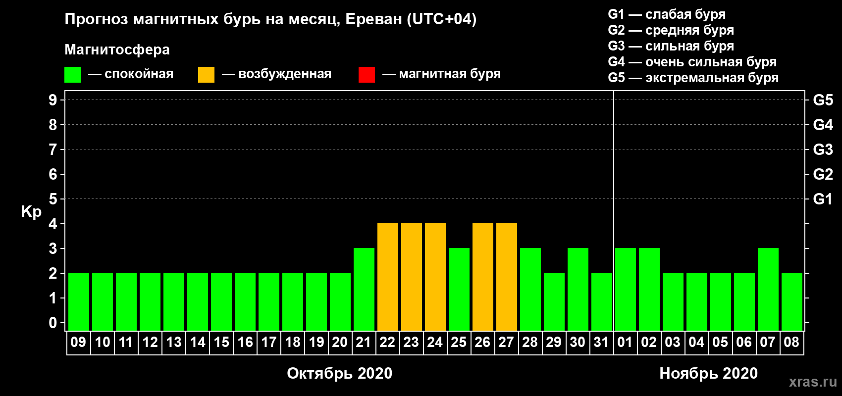 Прогноз магнитных бурь в Ереване — 9 октября 2020 года