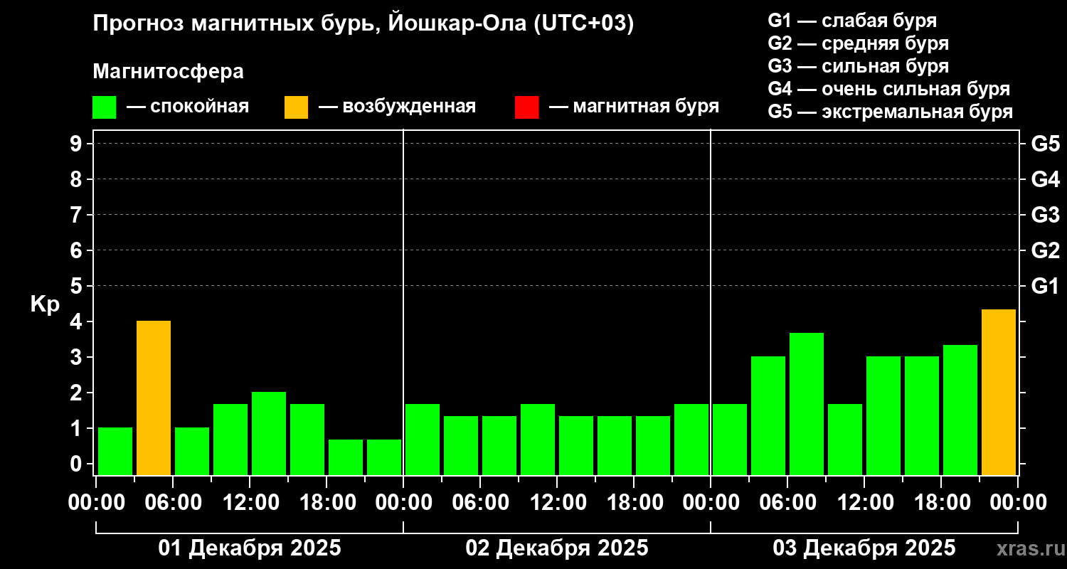 Прогноз магнитных бурь в Йошкар-Оле — 1 декабря 2025 года