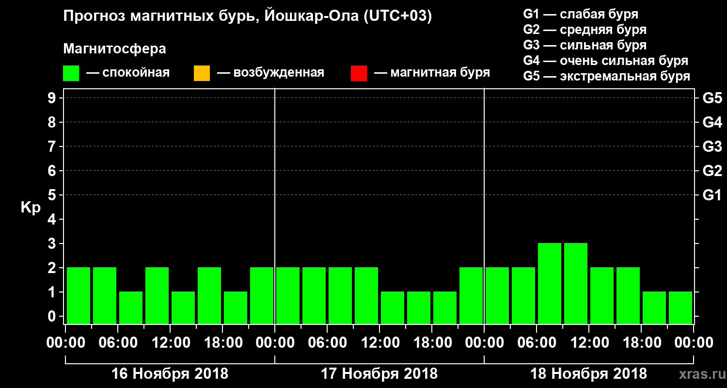 Прогноз магнитных бурь в Йошкар-Оле — 16 ноября 2018 года