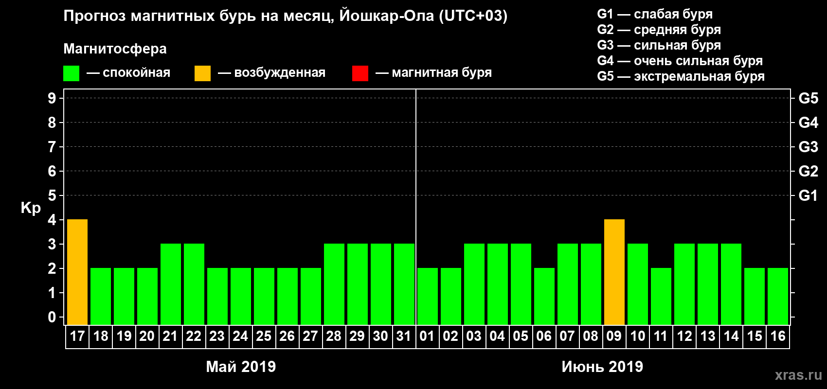 Прогноз магнитных бурь в Йошкар-Оле — 17 мая 2019 года