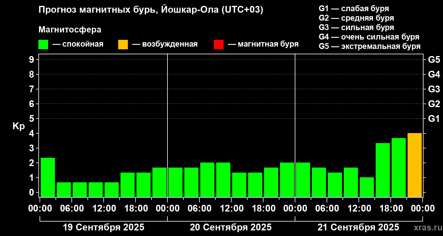 Прогноз магнитных бурь в Йошкар-Оле на 19 сентября 2025 года