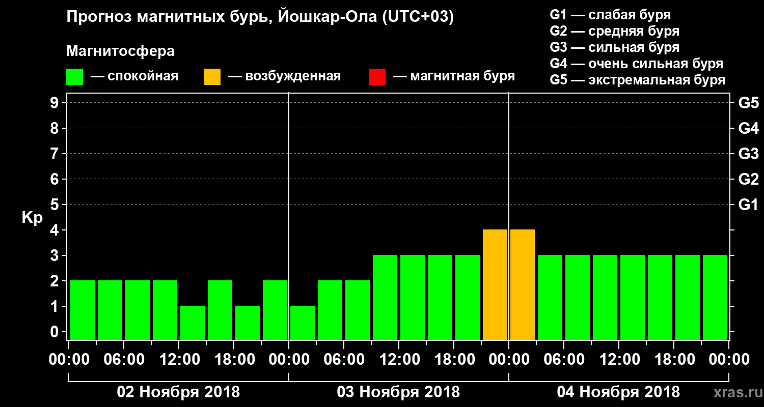 Прогноз магнитных бурь в Йошкар-Оле — 2 ноября 2018 года