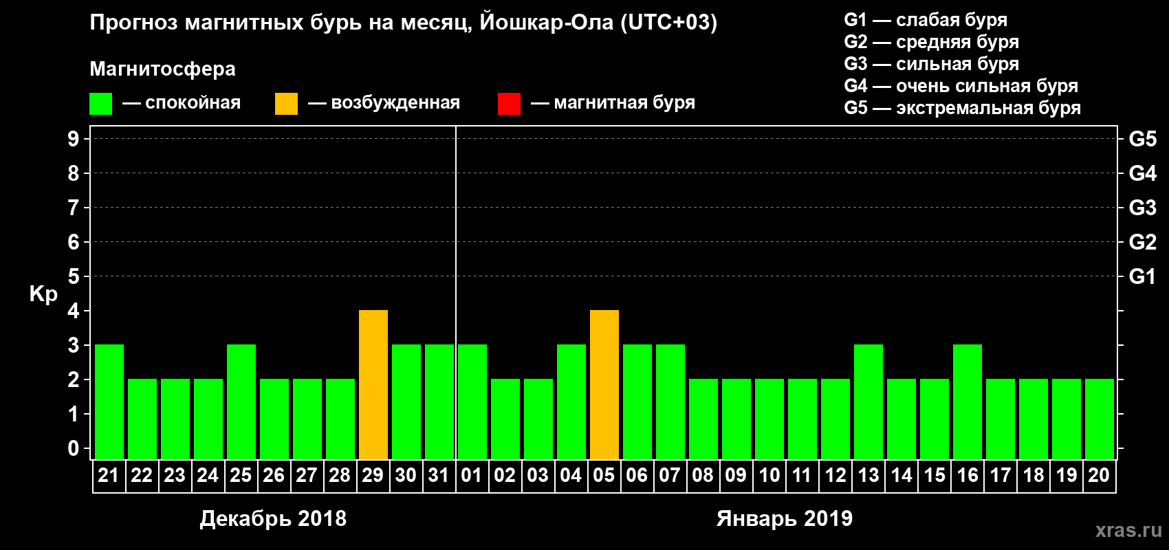 Прогноз магнитных бурь в Йошкар-Оле — 21 декабря 2018 года