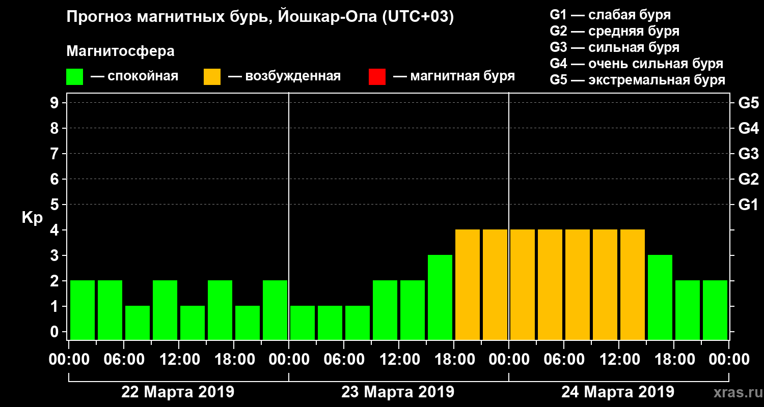 Прогноз магнитных бурь в Йошкар-Оле — 22 марта 2019 года