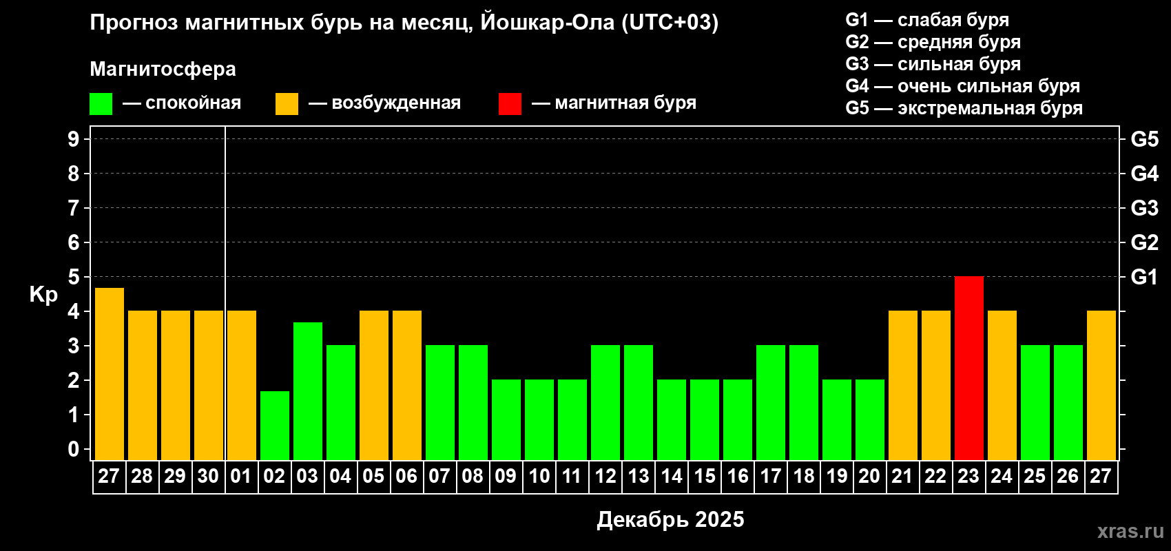 Прогноз магнитных бурь в Йошкар-Оле — 27 ноября 2025 года