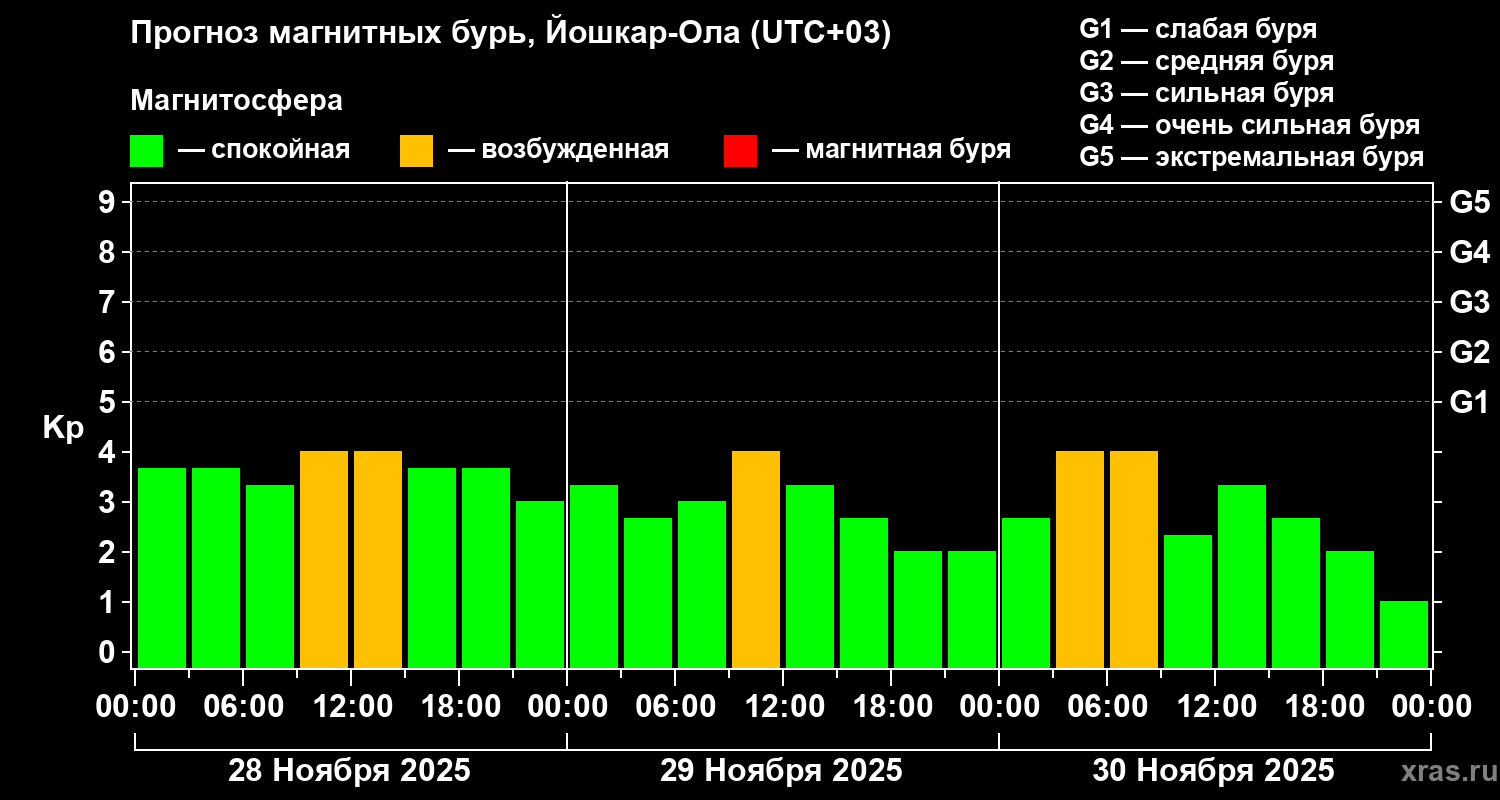 Прогноз магнитных бурь в Йошкар-Оле — 28 ноября 2025 года