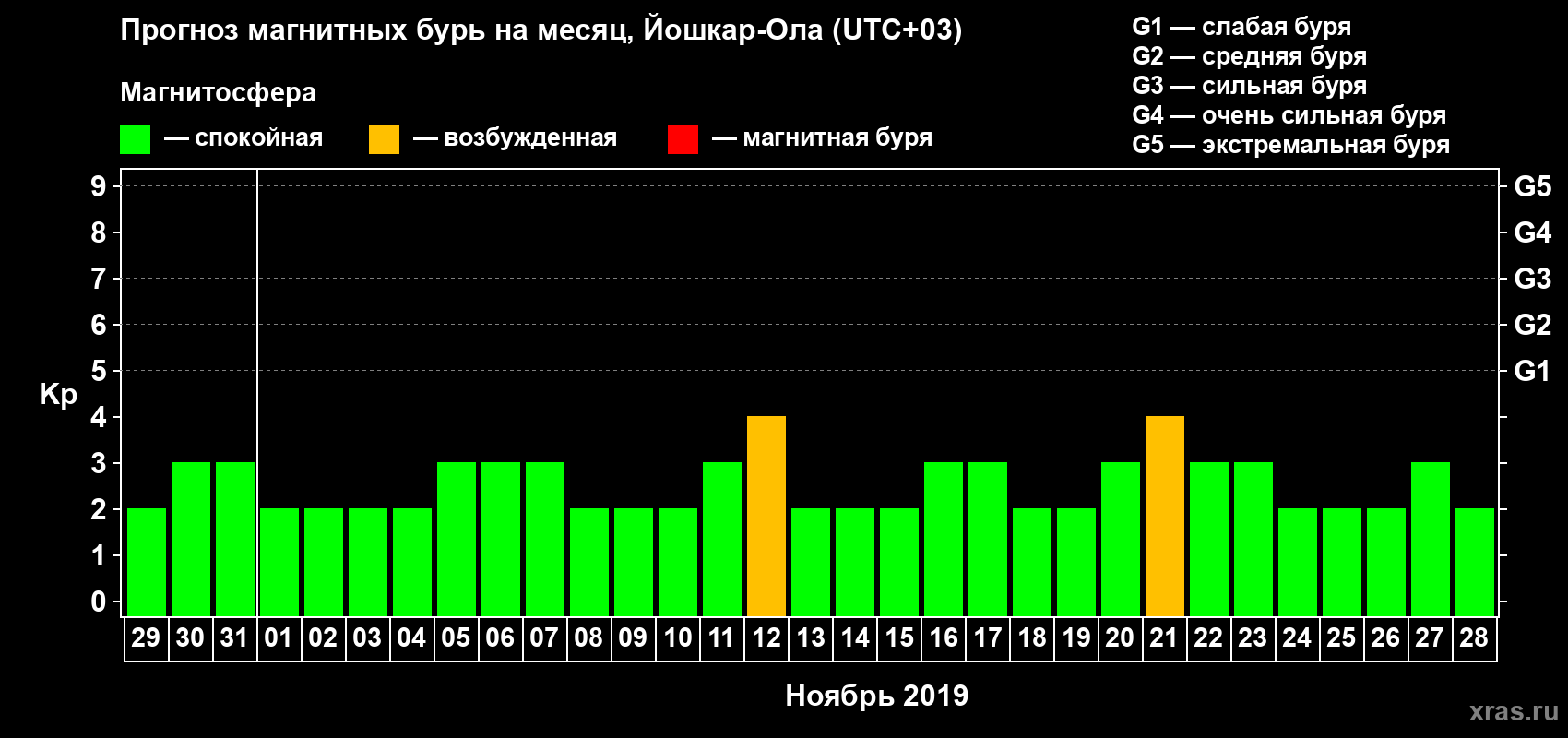 Прогноз магнитных бурь в Йошкар-Оле — 29 октября 2019 года