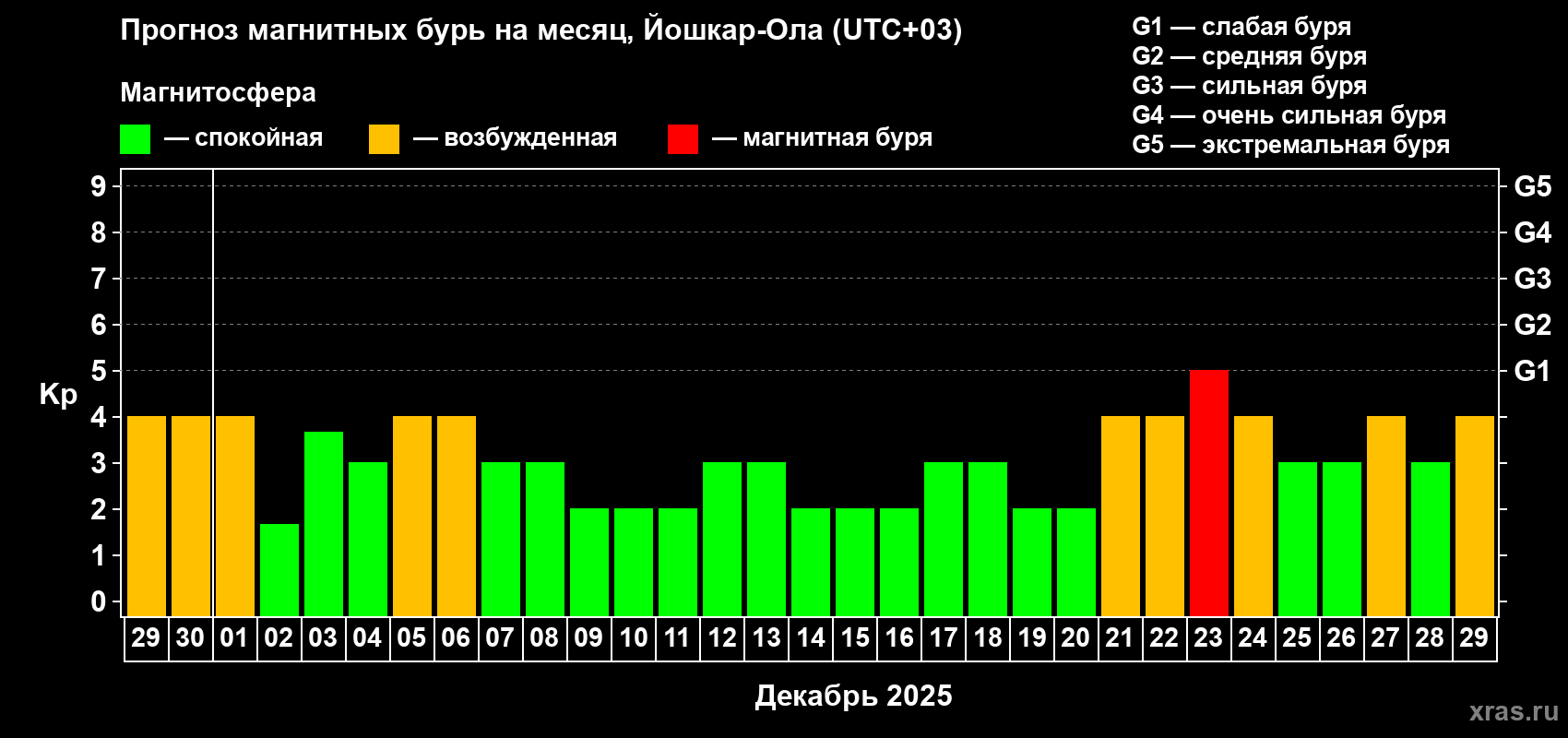 Прогноз магнитных бурь в Йошкар-Оле — 29 ноября 2025 года