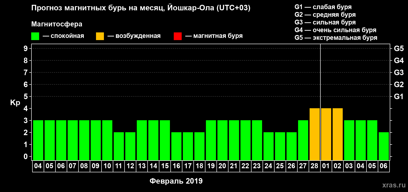 Прогноз магнитных бурь в Йошкар-Оле — 4 февраля 2019 года