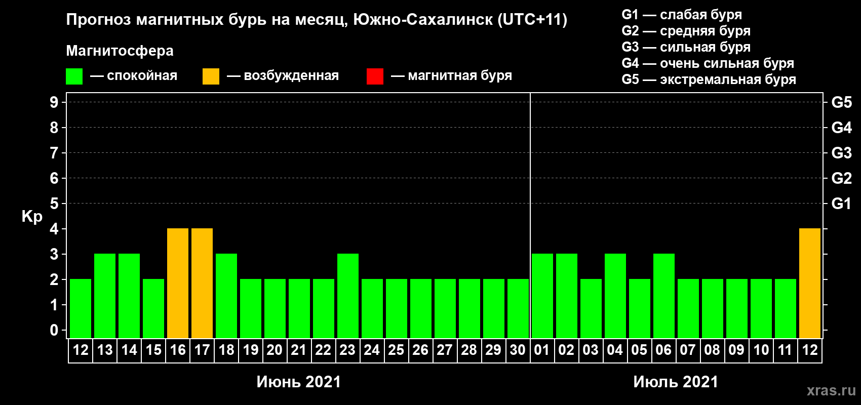 Прогноз магнитных бурь в Южно-Сахалинске — 12 июня 2021 года